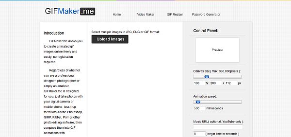 “GIFMaker.me allows you to create animated GIF images online freely and easily, no registration required. Regardless of whether you are a professional designer, photographer or simply an amateur, GIFMaker.me is designed for you. Just take photos with your digital camera or mobile phone, touch up them with Adobe Photoshop, GIMP, Ribbet, Pixlr or other photo editing software, then compose them into GIF animations with GIFMaker.me!”
