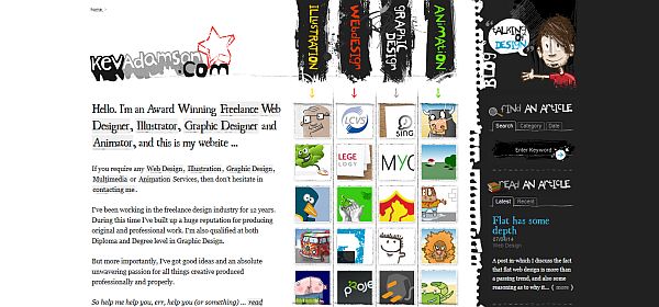Yet another online portfolio, this time belonging to freelance web designer, graphic designer, illustrator and animator Kev Adamson. The site packed with comic-like illustrations, showcasing Kev’s sensibilities and style, so you know from the get-go with what (or rather, who) you are dealing with.