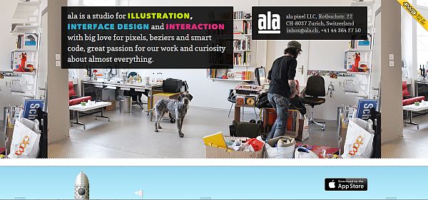 ala is an illustration, interface design and interaction studio from Zurich, Switzerland, and their website is like a trip into a designer’s mind. It is packed with presentations of the works they did for various clients, including Liip and DjagoCon Europe, as well as personal projects, making it a fantastic mix of pixel and vector illustration, and web design. The site runs real smoothly, and you will definitely want to be checking out their projects.