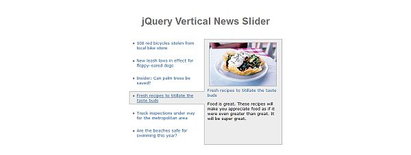 “A jQuery and CSS3-based slider module that displays news headlines on the left along with a preview image and brief description on the right. The “current” item is highlighted and switches automatically at intervals.”
