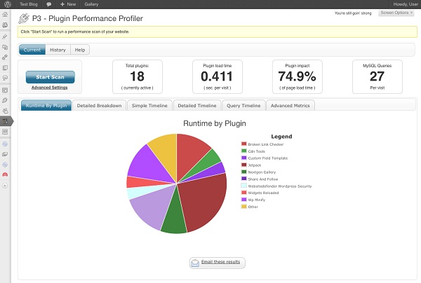 If you install too many plugins, it may cause your website to have loading problems, and you don’t want loading problems – they will surely make users avoid your website, and you will lose precious traffic. Monitor it with the P3, Plugin Performance Profiler, plugin.