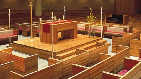 Vignelli, along with his wife Lella, designed the interior of Saint Peter’s Church. It is a powerful, elegant and timeless approach, innovative all along the way. They were truly giants in their field, that are responsible for shaping, not onlyhousewares and furniture design, but liturgical life as we know it.