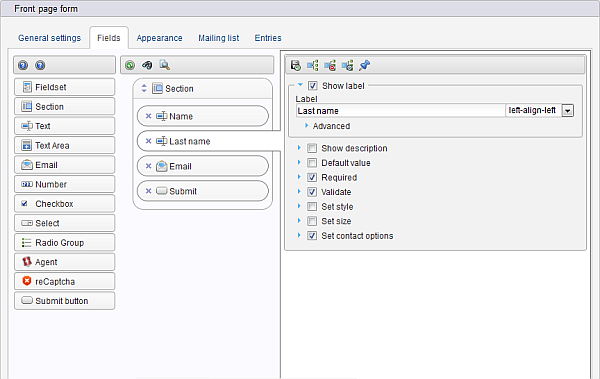The latest version of this plugin lets you rearrange fields with a drag-and-drop interface, export form submissions to .CSV, and boasts file upload fields and a redesigned admin panel.