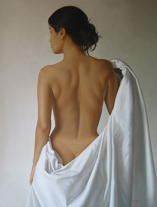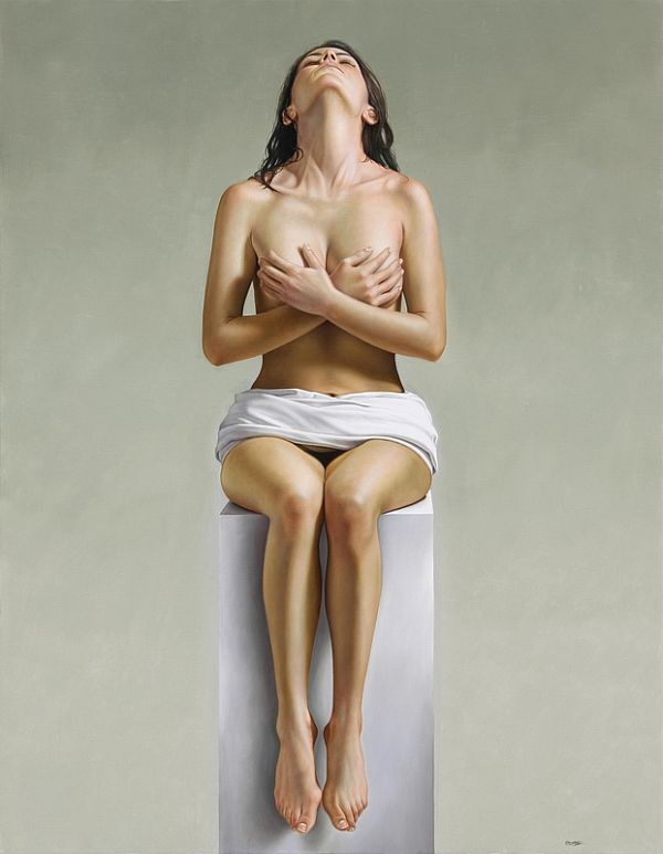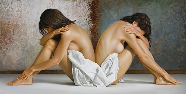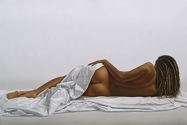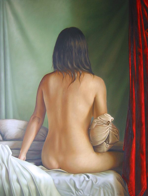 Omar has a real passion for the nude, and it was already showing back in 2003. The is pose is beautiful, and the variations of white and grey contrast marvelously with the skin tones.