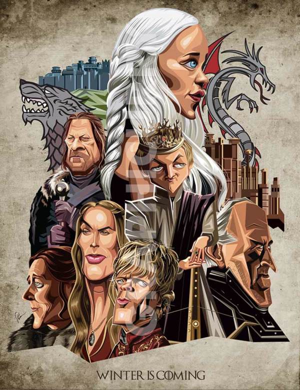 Prasad Bhat, a digital artist based in India, is a wonderful creative person that chose to draw famous TV and movie characters in a caricature way. He did an impressive job with his unique cartoonish style. He created art work based on the main characters of Game of Thrones, True Detective, Sherlock, Reservoir Dogs, James Bond, Breaking Bad and many others. Prasad Bhat is also the owner, and founder of GraphiCurry – “his company is the brainchild of Prasad Bhat, who grew up with inherent skills of drawing and eating food.