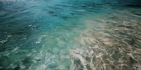 “The Israel series was inspired by the coastline of Tel-Aviv. When I traveled there in 2009 I was fascinated with the waters of the Mediterranean, which were saturated with rich hues and were simultaneously transparent and luminous. I took on the enjoyable challenge of capturing this rich contrast, rendering the golden sand and its reflection in smooth pastel. The sea foam was created in layers to evoke the bubbly essence of a crashing wave.”