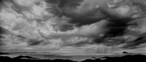 “In 2004, I began making large-scale pastel drawings, and for the following two years tumultuous skies consumed my attention. Severe weather is at once captivating and destructive, beautiful and terrifying. These early works evoke both the turbulence and the tranquility found in the powerful forces of nature. Perhaps my compositions offer a reminder of how small we are in light of our planet’s potential (or, even more extremely, in light of the universe’s infinitude). Reflecting on this has always been therapeutic for me, and I hope the drawings offer viewers a similar experience.”