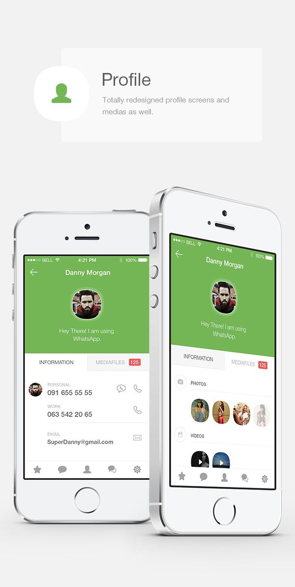 Now that’s more like it! The profile screen boasts a nice flat design, the classic white and green color scheme looks right, and lets you instantly know that you are, in fact, using WhatsApp, and its made in such a way that using it is completely intuitive.