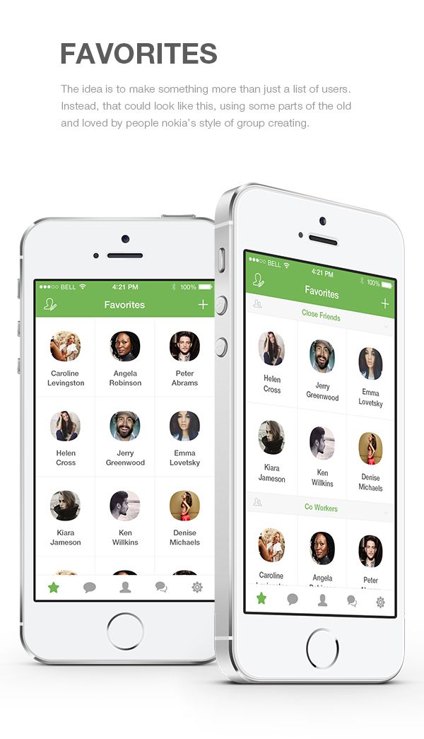 Like he says himself, the Favorites screen is inspired by “Nokia’s style of group creating”. Once again, it looks absolutely gorgeous, and does not seem to be the kind of redesign that will take the user a long time to familiarize with. Also, you can split your favorites into several sub-groups, which is extremely useful.