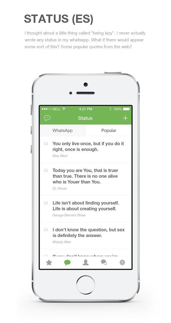 What a cool little feature! The designer openly admits that he never wrote statuses, just using the predefined ones, so he came up with this little ditty: taking popular quotes from the web, and adding them to predefined statuses collection. My hat well and truly off to him because this is one absolutely fantastic idea.