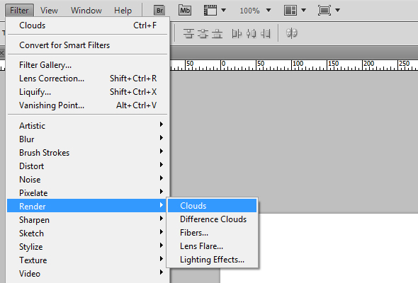 Hit D to reset the colors from your foreground and background colors and create a new layer (CTRL+SHIFT+N), then fill it with a clouds render.