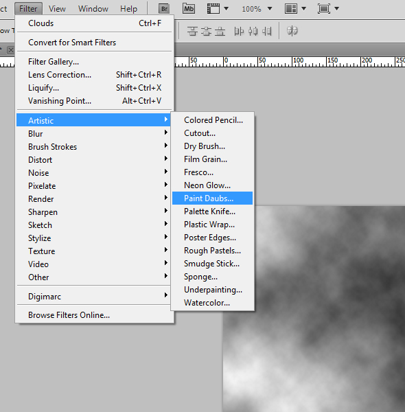Go to Filter > Artistic > Paint Daubs.