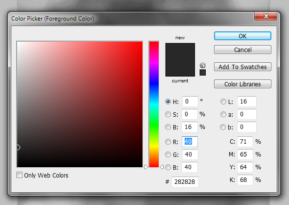 Create another layer (CTRL+SHIFT+N) and fill it with a dark gray (#282828) and place it above the “background” layer.