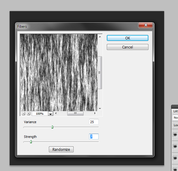 Create a new layer (CTRL+SHIFT+N), place it above all the other layers (CTRL+SHIFT+]), hit ALT + Backspace and go to Filter > Render >Fibers.