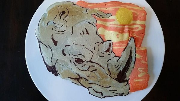 There are few things as cute as a baby rhinoceros, or as majestic and strong as a grown up one. There’s a certain stoic quality they posses which, really, I just find humbling. Also, the sky in this pancake looks like bacon. I live for bacon.