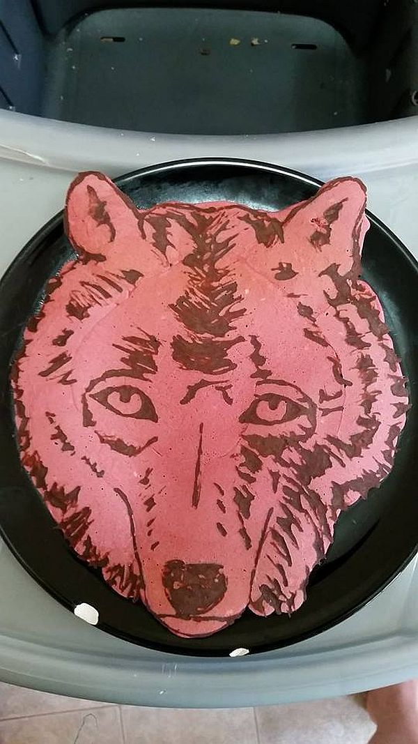 One of the most efficient pack hunters, wolves are amazing creatures, trapped somewhere between adorable fluffy puppies and ravenous furry killing machines. I am guessing that here we are supposes to see the latter, but it is hard, seeing as the pancake is a bit blood colored.