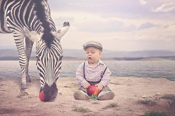 While being stuck on another project, requiring an expensive lens to finish (at least, that is what I could make out of the translation Google Translate provided), Daniela found some old pictures she did at the zoo. She decided that, while being stuck on her current project, she would do a series of lovely photos of Theodore with animals from the zoo. The results, as you are about to see, are really cool.