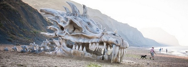 Khaleesi look away! Ow, wait, it’s a fake. You got me there. How did it get on the beach though? Well, for the release of season 3 on Blinkbox, the UK video on demand company created this giant dragon skull on the Jurassic Coast in Dorset, England.
