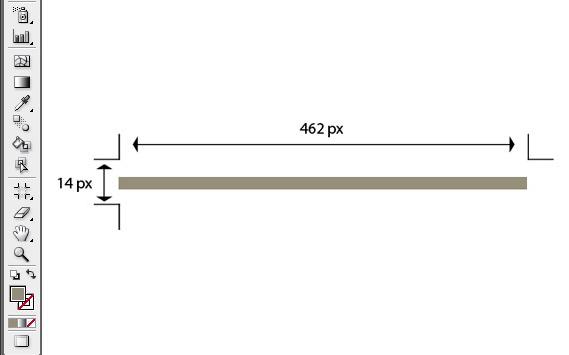 Grab the Rectangle Tool (M) and create a shape like below. It’s not a must to be exactly the same size, but try to preserve the proportions. If you want to create it exactly like this, click on your canvas, then a “Rectangle†options window will pop up. Give it 462 px Width and 14 px Height. Hit OK. Also make sure you have no Stroke and the fill should be #918D79.