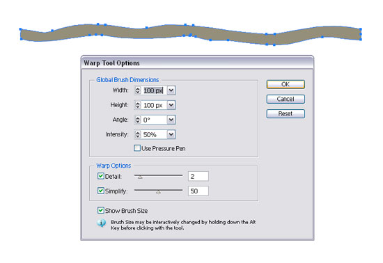 Use the Warp Tool (SHIFT+R) and press enter. Use settings similar to the image below. Hit OK. Now click on your rectangle until you get a similar result, like mine. Don’t overdo it though, it will look un-natural.