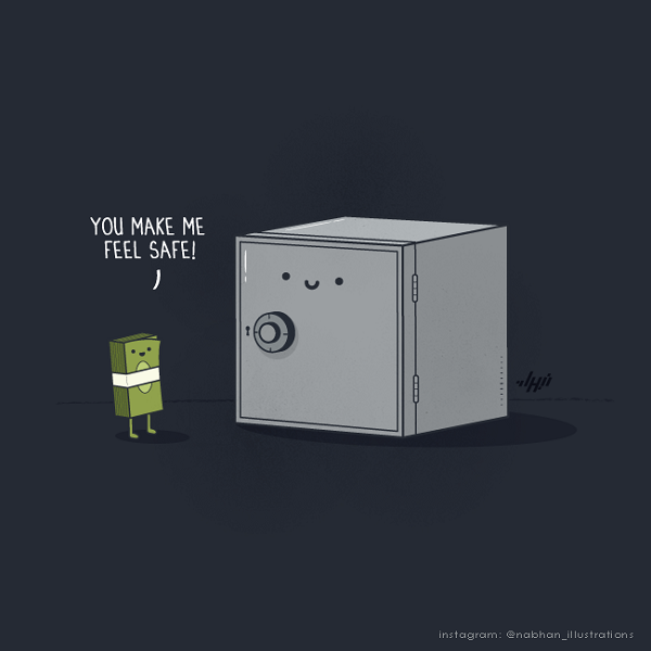 Mr. Safe is going to hug the value out of you, you innocent little stack of money. But who am I to interfere between this unorthodox love? I’m just skeptical. Be with whomever you want to be Money. Just stay away from Mr. Shredding Machine, she is a douse.